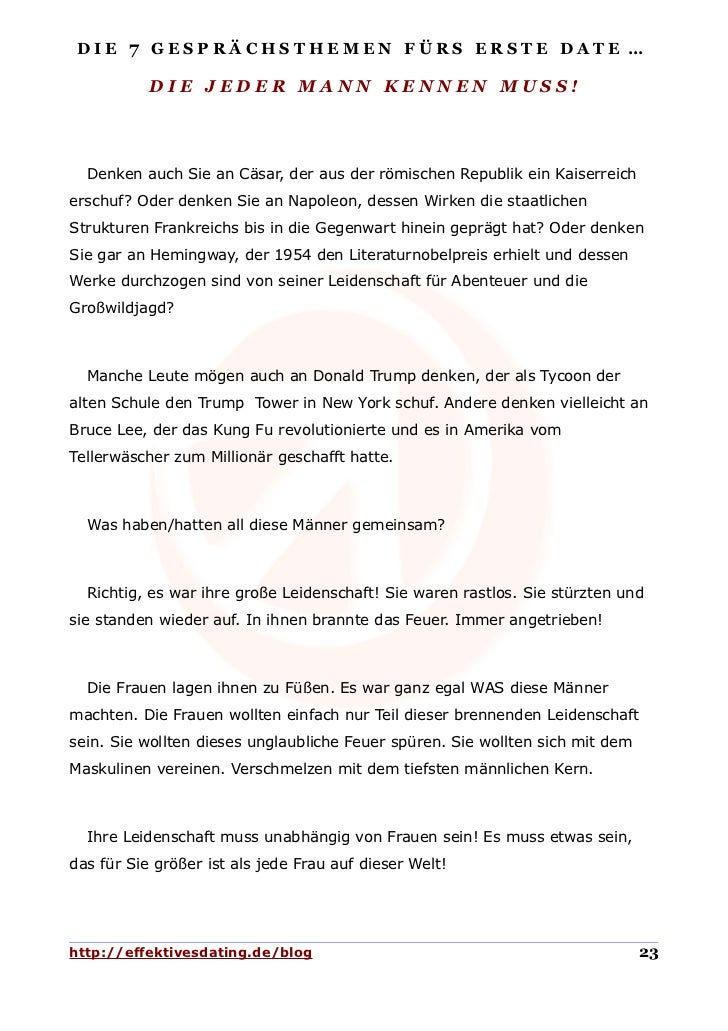 Etwa, wenn wir ihm unseren Zoff mit der besten Freundin schildern. Es gibt jedoch Ängste, Befürchtungen und Zweifel, die den Weg in eine erfolgreiche Zukunft schwer machen. Gegenseitiges Anschweigen kann ein echter Flirt-Killer sein! Lustige und spannende Themen für Gespräche gibt es theoretisch genug.